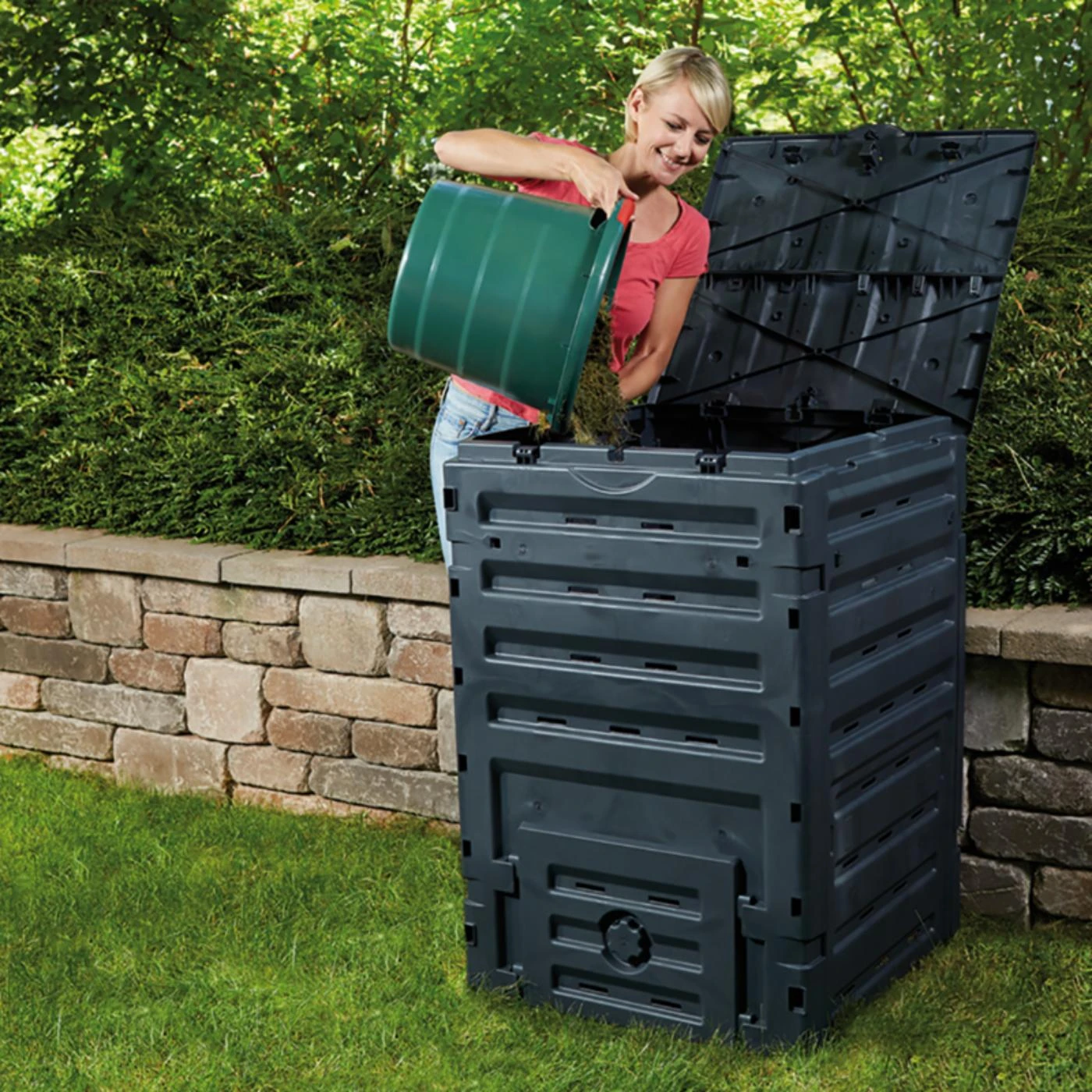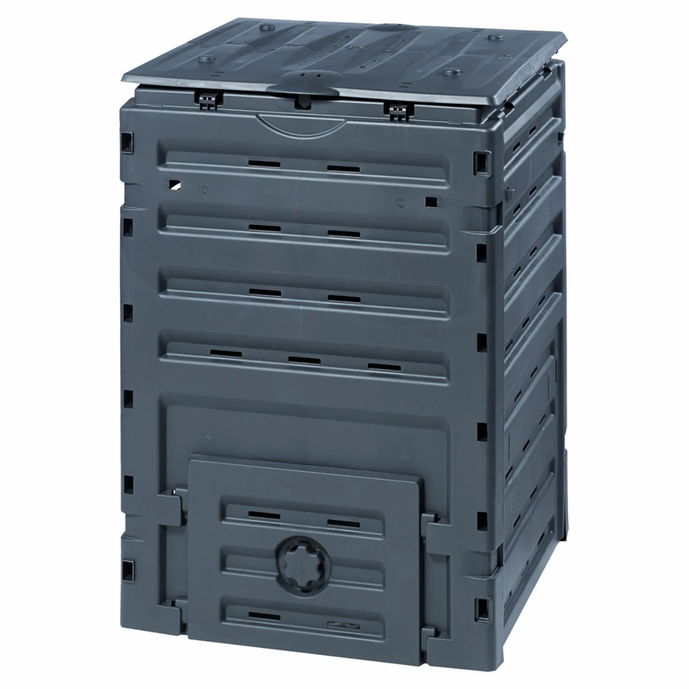 Get started on a new, more sustainable lifestyle with the Exaco Eco Master 450 Recycled Plastic 120-gal. Compost Bin. This medium-sized bin with two removal doors is perfect for the beginner or casual gardener. It features snapping walls for easy assembly and a rigid design constructed entirely from recycled material. Just add fresh kitchen and yard waste and let time do the work, or stir occasionally with a composting tool to speed up the process. Use to fertilize your garden and grow a backyard paradise!