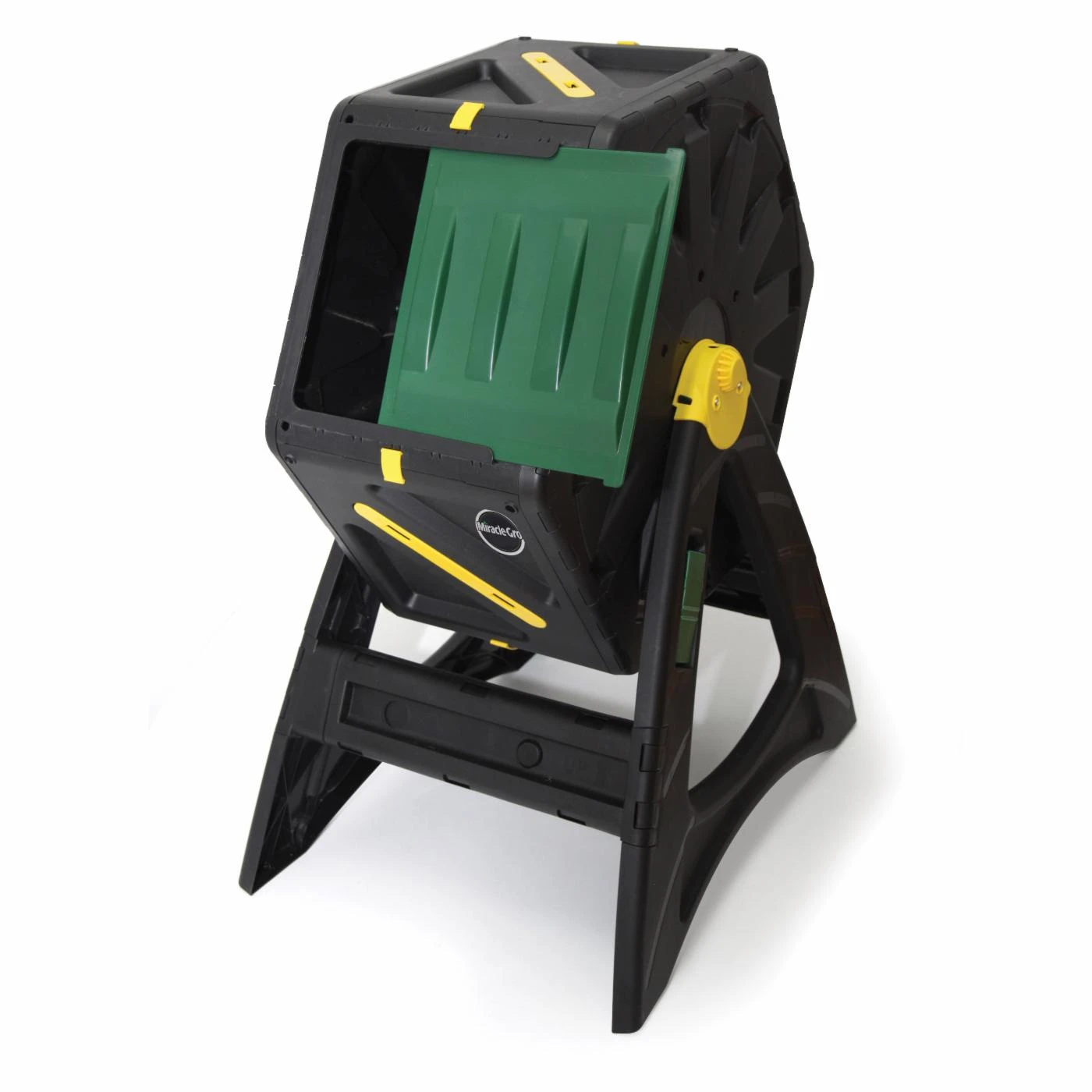 Serious gardeners and eco-conscious homeowners are going to love the Miracle Gro 18.5 Gallon Tumbling Composter. This compact composter takes your organic waste and tumbles it into a powerful fertilizer. Internal mixing bars make the decomposition process go faster. The frame is built from tough, UV-resistant plastic with wide legs.