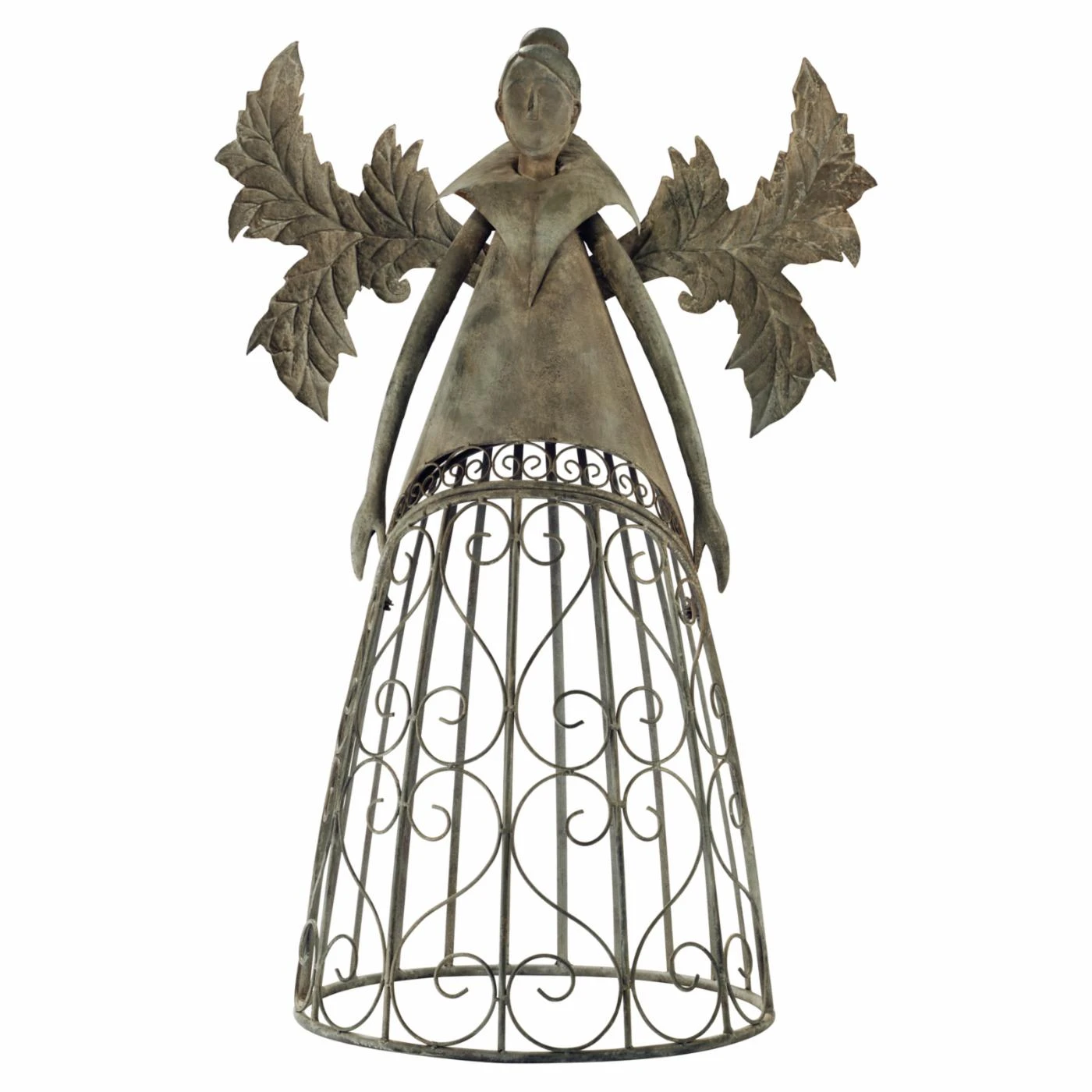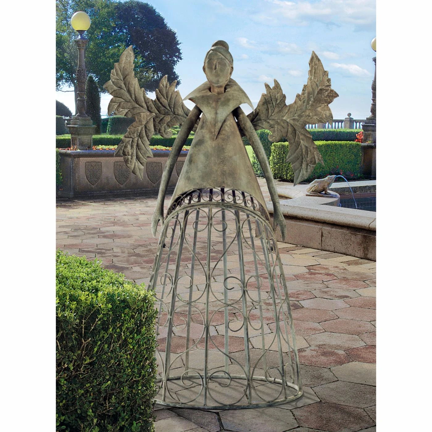 Plant twining ivy, morning glories, and other climbing plants around the Design Toscano Tempest the Metal Fairy Garden Trellis to create a beautiful, fresh display. This trellis is crafted from weather-resistant metal and finished in a weathered bronze. It features a stately fairy design, with stunning leafy wings and the skirt of her dress forming the trellis.