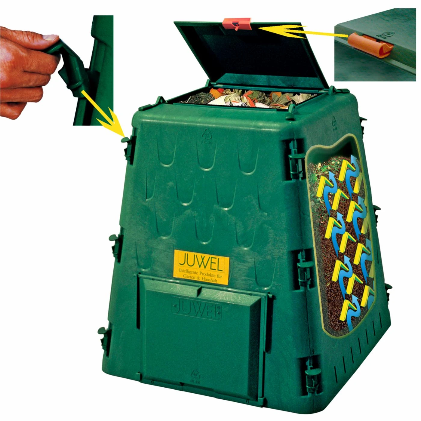 The AeroQuick 77 Gallon Recycled Plastic Compost Bin is full of features you won’t find on just any other composter. This compost bin features special aeration technology with integrated air ducts that allow for quicker and odorless composting. Microbubbles in the UV-resistant recycling panels provide additional thermal effect. There are large hatches for easy access to your compost.