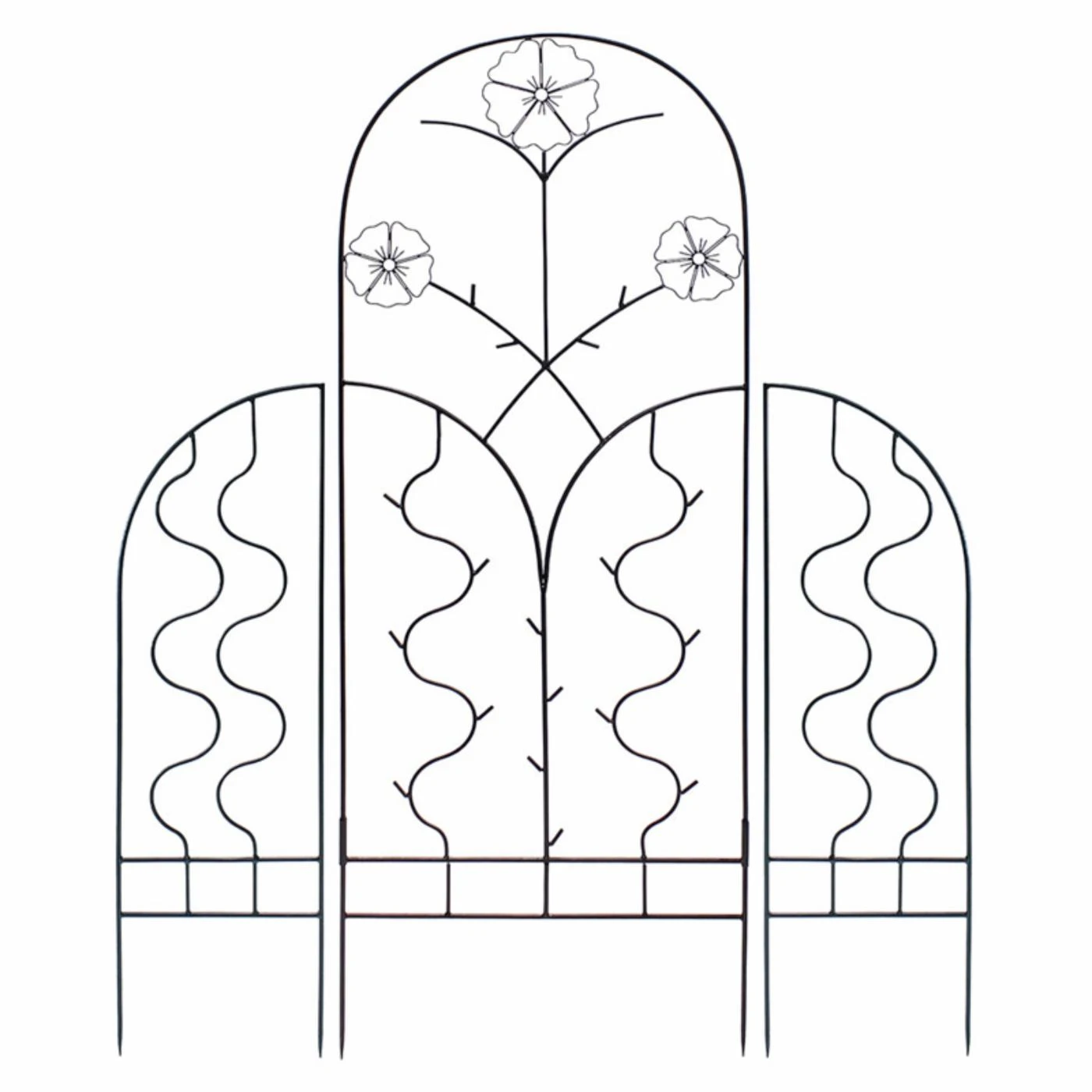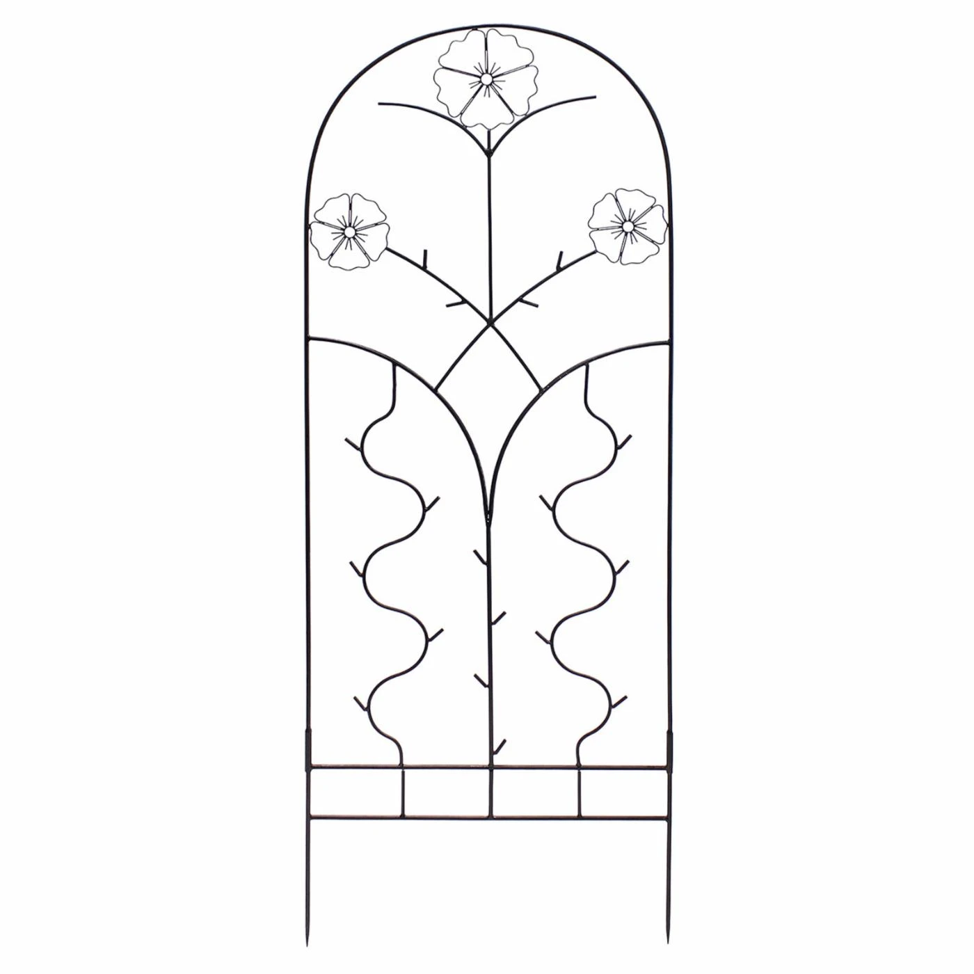 Plant climbing flowers below this Achla Designs Primrose Garden Trellis and watch nature’s beauty blossom. This freestanding garden trellis is handmade of wrought iron with an arched top, primrose detail, and powder-coat black finish. It may be used in conjunction with other trellis panels.