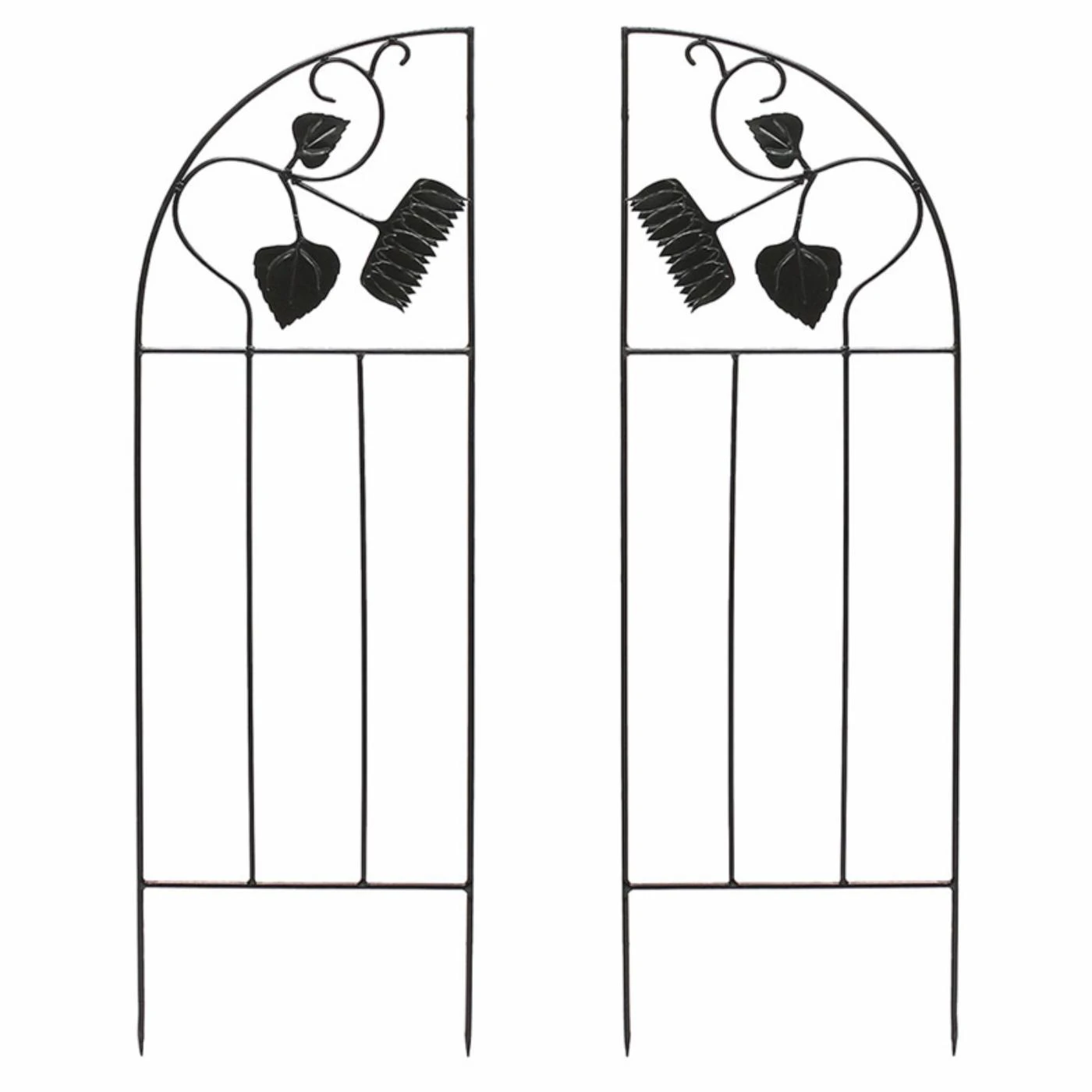 This wrought iron Achla Designs Sunflower Garden Trellis Side Panel – Set of 2 makes it easy to grow a natural privacy screen or even a customized vegetable garden. This set includes two freestanding garden trellis side panels with arched tops, sunflower details, and powder-coat black finish. The trellis panels stake into the ground and may be used with coordinating panels.