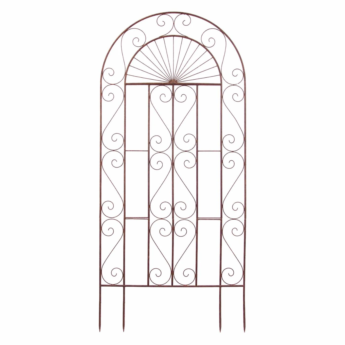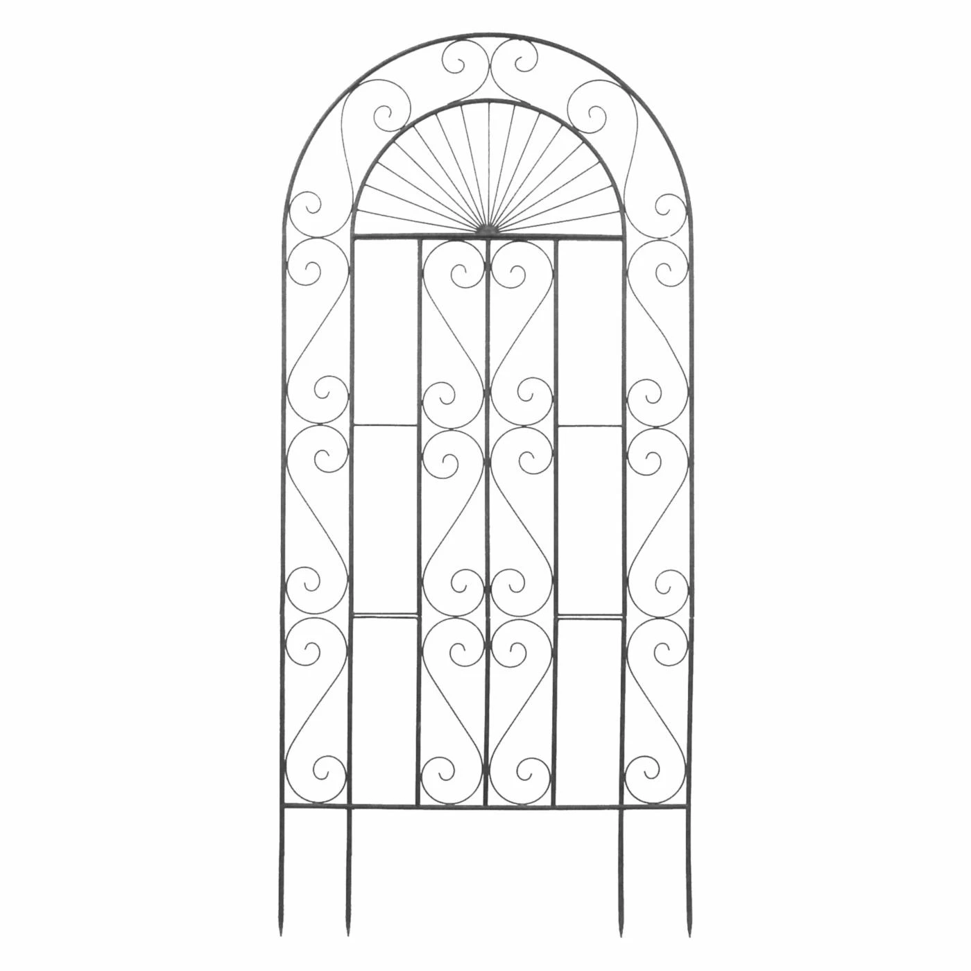 The Deer Park Ironworks Sunset Garden Steel Trellis is like a jungle gym for for your climbing vines and flowers. Let them stretch and grow up, over, around and under our elegantly designed trellis. Place it along the side of your home to add a spark of interest to your landscaping, or position it at the entrance of a garden area. Constructed of sturdy and weather resistant heavy gauge steel, our intricately designed trellis has a powder-coated finish that complements any decor or color scheme.