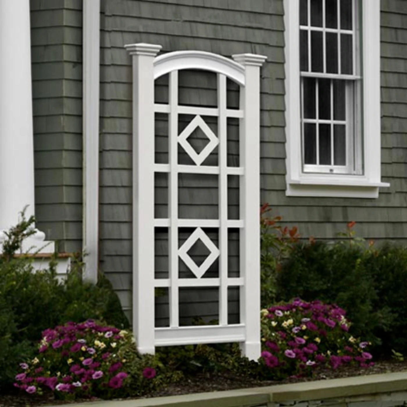 Thick side posts with large, tapered top finials give the Vita Milan 4.75-ft. Vinyl Arch Wall Trellis a full-bodied look to ensure that it gets noticed in your garden or up against your house. The grid-like design with two diamonds is not only attractive, but perfect for roses and vines to climb. You’ll never have to pull out your flowers for painting or any kind of maintenance because this trellis is constructed of weather-resistant PVC. This vinyl material is virtually maintenance-free and is designed to look like freshly painted wood. You never need to paint or stain, and it will never yellow, crack, rot, split, or warp. Simply spray it down with the garden hose when it gets dirty. You’ll need only a few basic tools to assemble and install this trellis, and detailed instructions are included. We’re so sure of the quality of this trellis, it comes with a 20-year warranty.