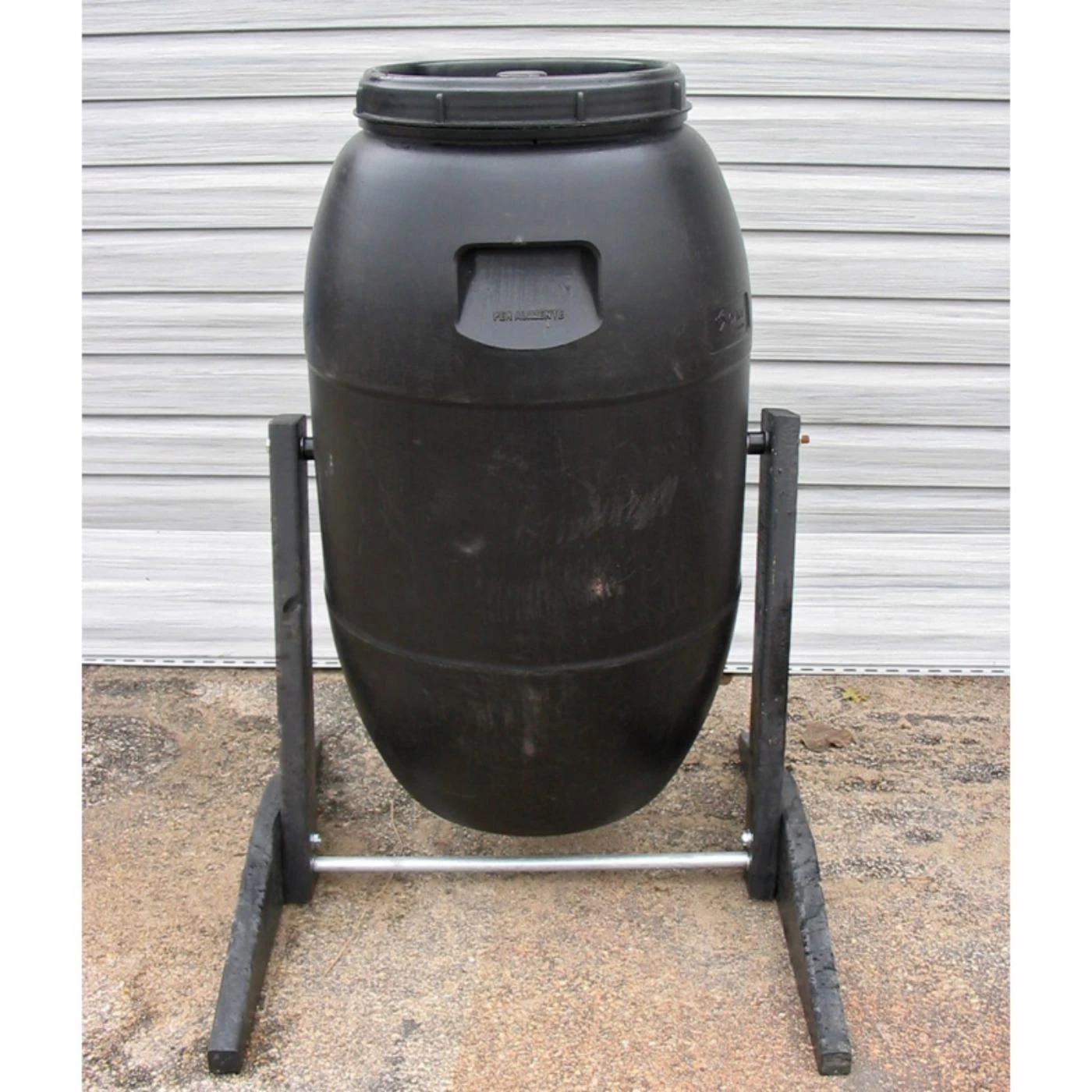 Recycle your yard waste using a recycled barrel! The Upcycle 55 Gallon Plastic Compost Tumbler is made from a food-grade high-density barrel we diverted from the landfill, and the stand is high-quality recycled fencing cedar so the whole kit is Earth-friendly before you even use it. Centered on the stand, the barrel turns easily while aluminum rods inside help mix and aerate the dirt, speeding up composting time by 90 percent! A plastic interior tube helps it aerate and drain for odor-free composting. The black barrel converts sunlight into warmth and holds it in even on cool nights. The easy-access lid opens at waist height for back-saving convenience. Simple assembly.